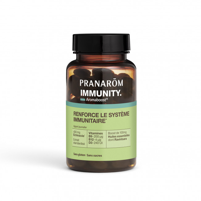 COMPLÉTEZ VOTRE RITUEL DE SANTÉ : Pour optimiser les résultats, vous pouvez combiner les capsules Aromaboost IMMUNITY avec le Roll-on IMMUNITY, un geste simple et instantané pour renforcer l’immunité à tout moment de la journée.